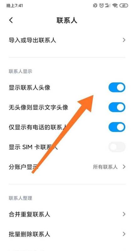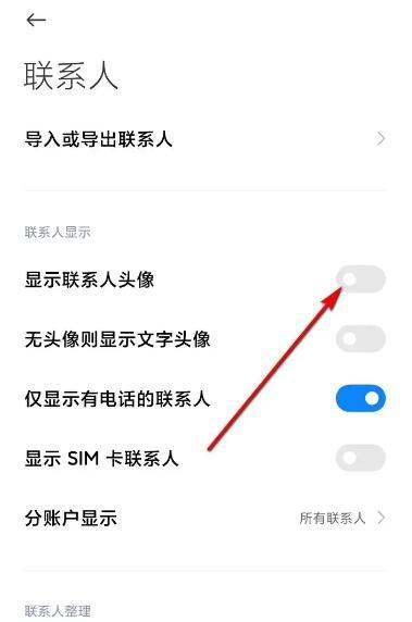 在联系人设置页面中,找到“显示联系人头像”选项。点击该选项旁边的开关按钮,将其开启(通常开关按钮变为绿色或蓝色表示已开启)。