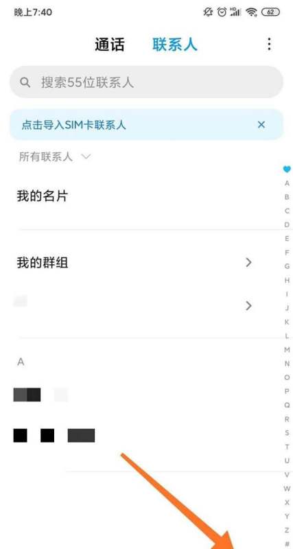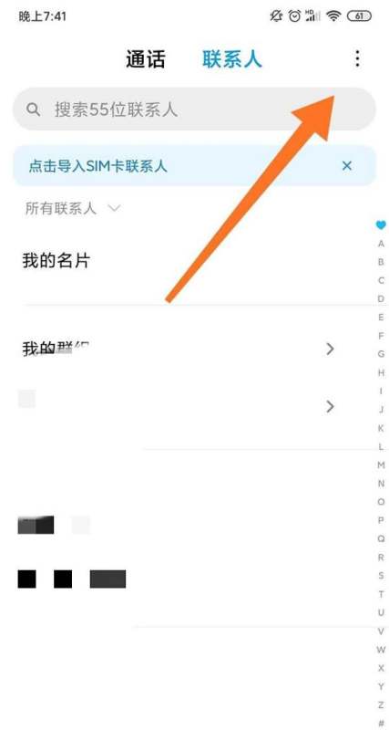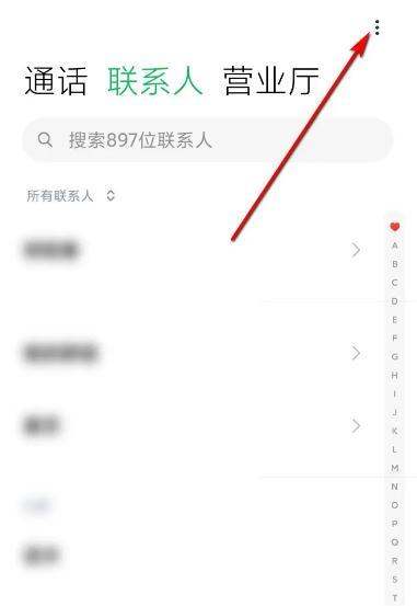 返回到联系人列表页面,点击页面右上角的图标(通常为三个点或齿轮形状),弹出下拉列表。
