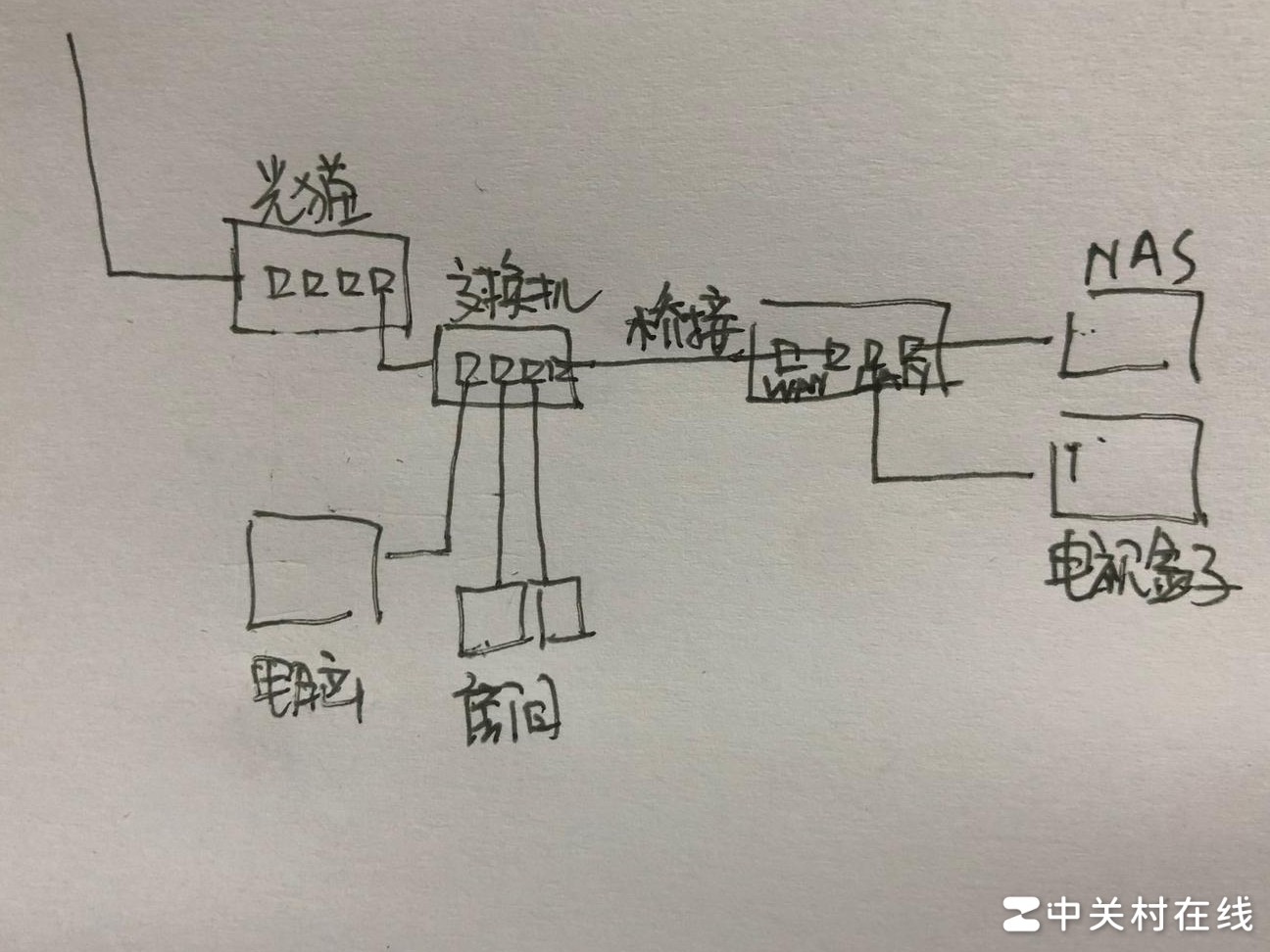 目前家中网络为光猫直接入户,使用的是HG7143D千兆光猫。一台电脑直连光猫,再通过光猫的LAN口连接路由器,NAS接入该路由器。由于电脑与NAS分属不同网络层级,未处于同一局域网,导致设备间无法正常通信和访问。