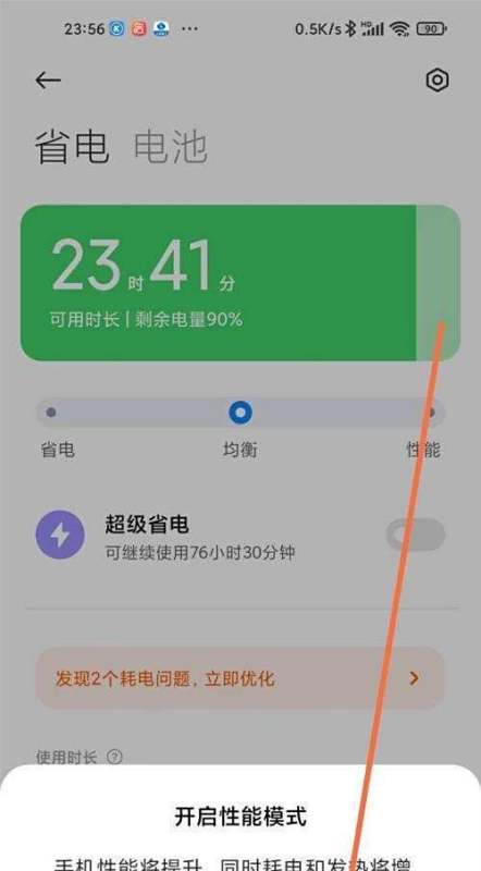 确认操作:点击“性能”选项后,系统会弹出确认窗口,提示性能模式对续航的影响。点击“确定”按钮即可完成切换。