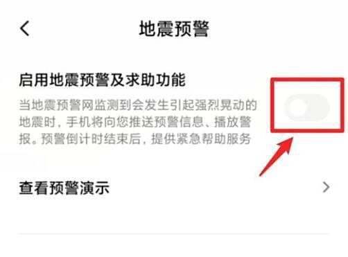 启用功能开关:选择“启用地震预警及求助功能”的开关。