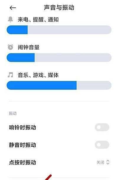 进入声音与振动设置打开小米手机,点击桌面上的“设置”图标,在设置菜单中选择声音与振动选项。