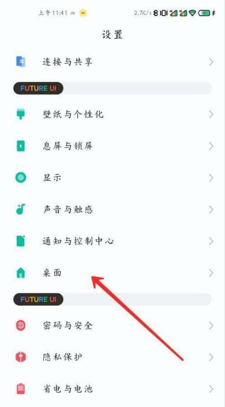 进入桌面设置在设置界面中,找到并点击桌面设置选项,进入桌面相关配置页面。