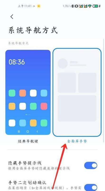 其他选项:部分系统版本可能支持悬浮球等辅助导航方式。选择后系统会自动保存设置,无需额外操作。