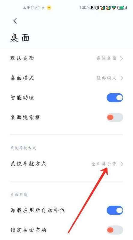 选择系统导航方式在桌面设置页面中,找到系统导航方式选项并点击进入,此时会显示当前可用的导航模式列表。