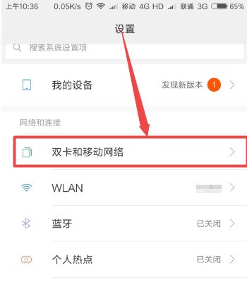 2、点击双卡和移动网络选项。具体方法如下图了策做弦夜品灯医初色志所示: