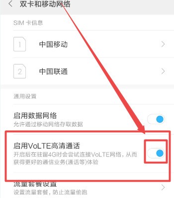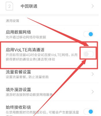 3、启用VOLTE高清通话选项。具体方法如下图所示: