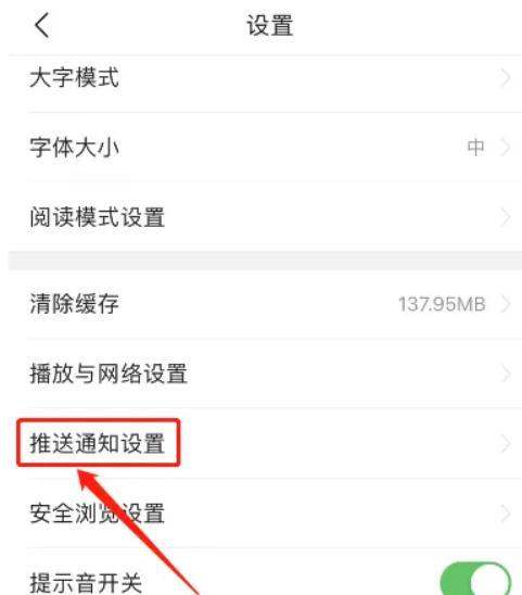 第二步:进入“推送通知设置”选项在设置界面中,向下滑动屏幕,找到“推送通知设置”选项并点击。该选项用于管理所有类型的消息推送权限。