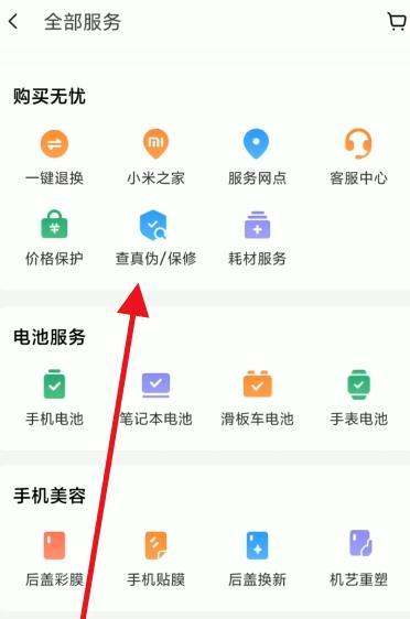 选择“购买无忧”中的“查真伪/保修”在服务详情页中,找到“购买无忧”分类,点击进入后选择“查真伪/保修”选项,进入保修查询页面。