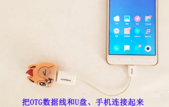 2、接着,用OTG数据线将手机和U盘进行连接操作;