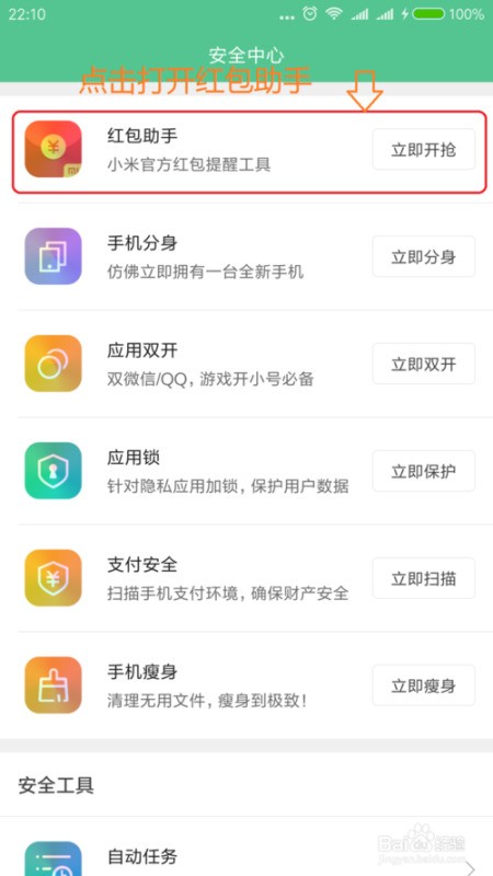 小米手机关闭红包助手的详细步骤如下: