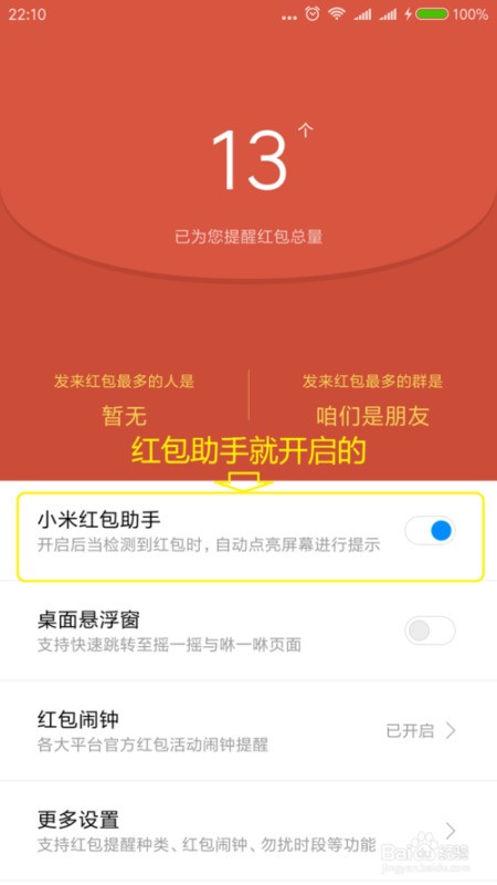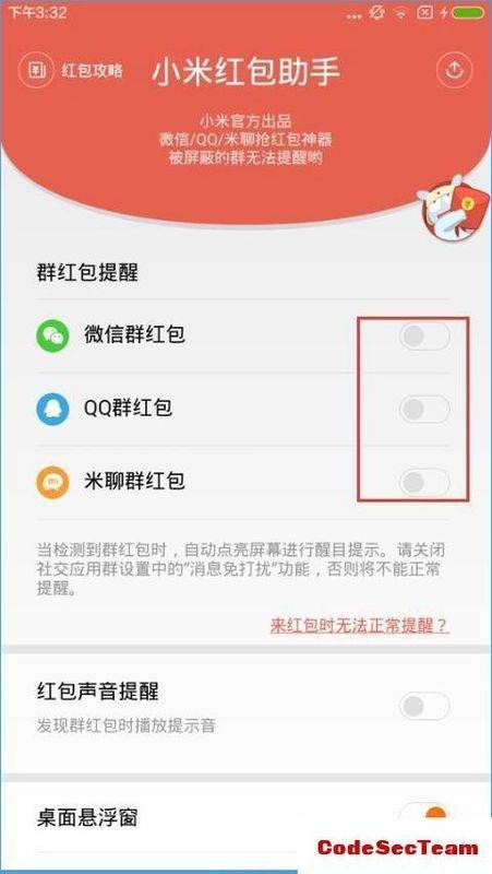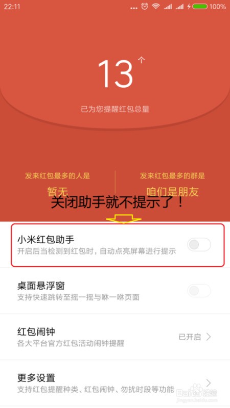 第三步:关闭红包助手开关
