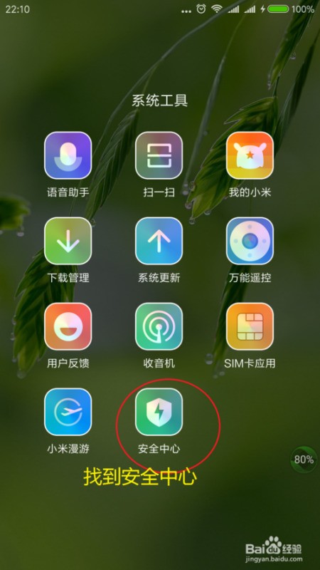 解锁手机后,在桌面找到并点击安全中心应用。这是小米系统内置的综合性管理工具,集成了病毒查杀、流量监控、红包助手等功能入口。