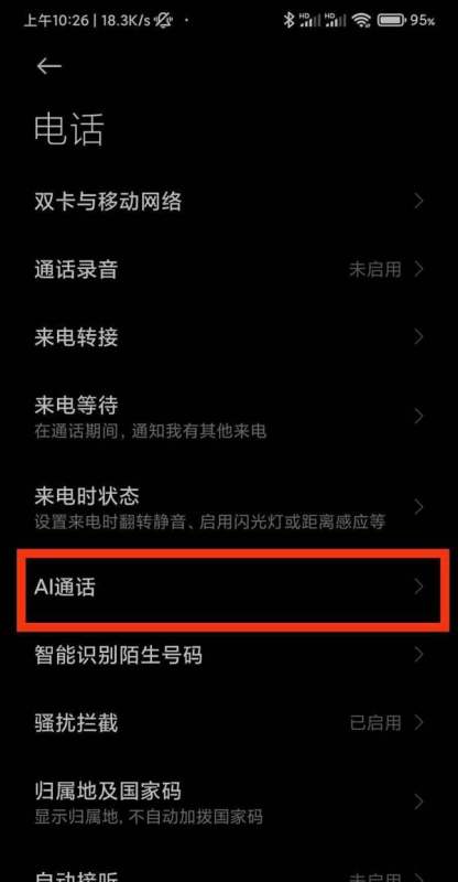 查找AI通话选项:在设置列表中滑动浏览,找到“AI通话”选项(可能位于“高级设置”或“智能服务”分类下),点击进入即可配置或使用AI通话功能。