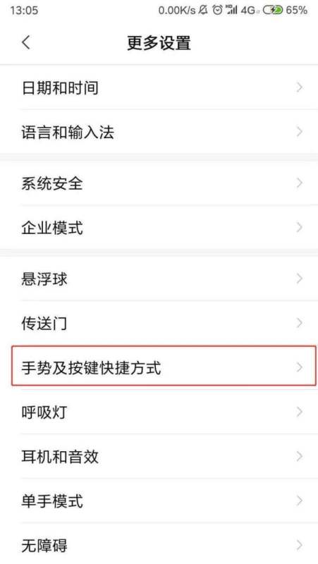 步骤3:选择手势及按键快捷方式在列表中找到并点击“手势及按键快捷方式”。