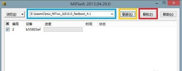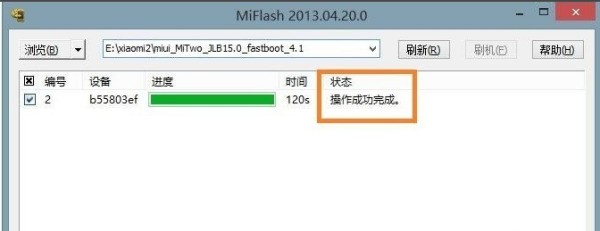 4、复制最新版本系统安装包的保存路径,粘贴到miflash的软件的链接空白出,点击刷新按钮,软件会识别手机,然后我们点击刷机即可,当软件提示刷机成功之后我们的手机会自动重启进入新系统,这次重启时间有点长。