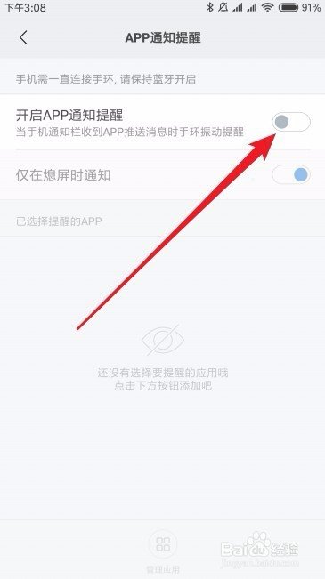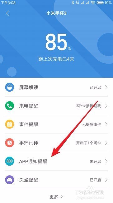 接下来在打开的小米手环3的设置页面中,我们点击App通知提醒的菜单项。
