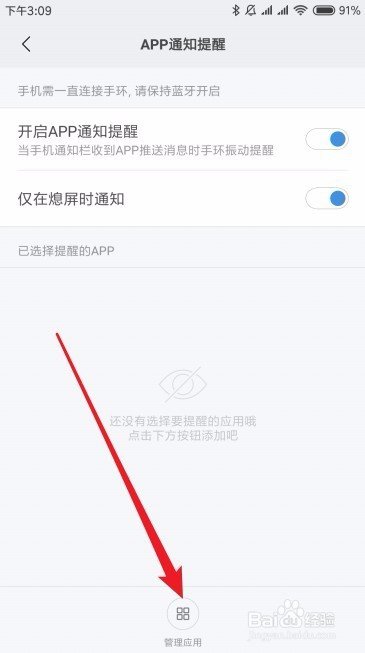 接下来回到App通知提醒设置页面,我们可以看到微信与QQ已添加到接收消息列表中了,这样以后我们的手环就可以接收微信与QQ的消息了。