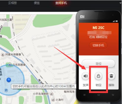 5、定位成功后,点击“锁定”按钮即可将手机锁定。