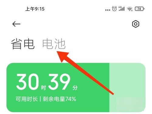 3、在此页面中,点击右边栏电池,进入电池页面。