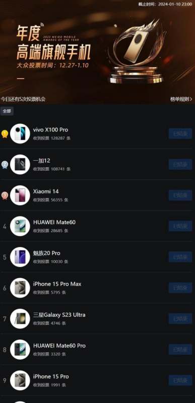 微博2023年度手机大赏榜单公布,vivo X100 Pro获旗舰榜单冠军;苹果或为符合欧盟法案分拆App Store。以下是详细信息: