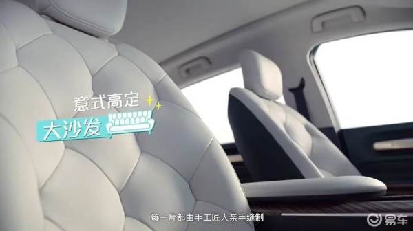 比如“大沙发”,先不论坐上去感受如何,至少“云朵沙发”座椅的意式BUBBLE沙发风格设计让人看上去就已经很有高级感了。它还根据中国95%人体工学数据定制,支持主驾6向电动调节和副驾4项电动调节。
