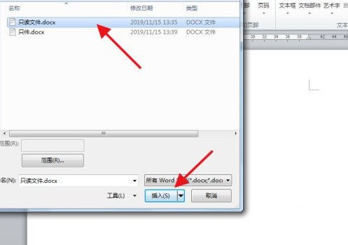 6.在弹出的界面点击选择“只读文件”,然后插入即可;