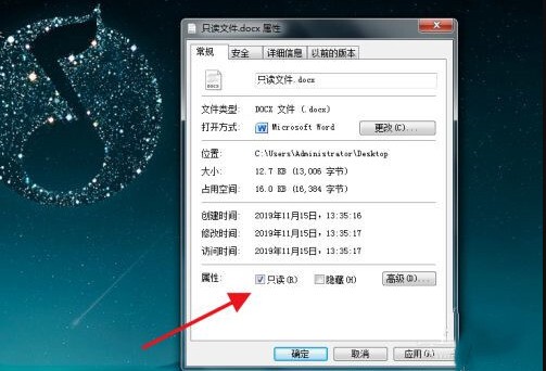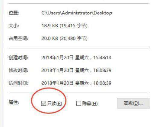 2.接着会出现文件属性界面,查看到“只读”选项是否被勾选上了?将其取消勾选;