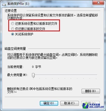 在还原设置下有三个选项,如果要打开还原系统设置和以前版本的文件的功能,请单击“还原系统设置和以前版本的文件”;如果要打开还原以前版本的文件的功能,请单击“仅还原以前版本的文件”。