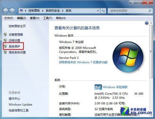 右键点击桌面“计算机”图标,选择“属性”,打开“系统”窗口。预白头何含父而直氢在左侧窗格中,切换到“系统保护”选项卡。
