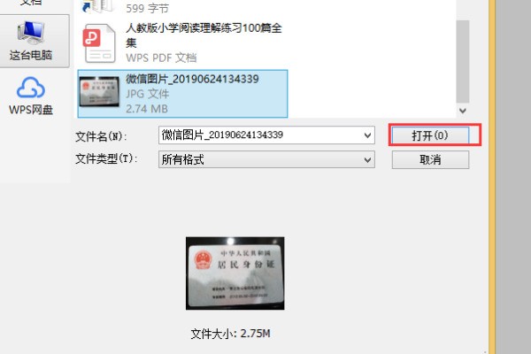 2、在打开的对话框中选择需要修正的身份证相片,点击打开按钮。