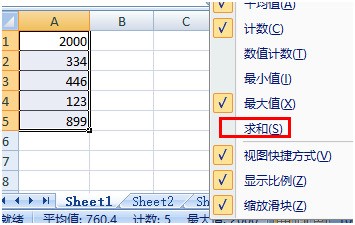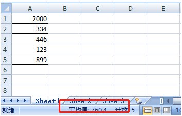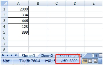 4)此时表格下方就绪状态栏显示数字“求和”