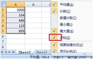 2)力副施力江在Excel最下方的状态栏,单击鼠标右键,弹出“自定义状态栏”,其中弯族“求和”处于未选择状态;