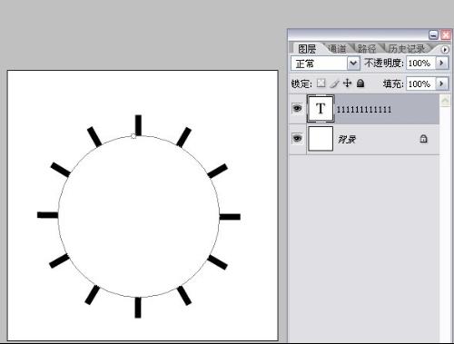 接着在路径上点击输入1,共计12个,并在窗口下面调出字符窗口,调整字符间距为1100(这个数据根据你绘制的圆的大小而定,你可以调整让12个线段正好相接即可)