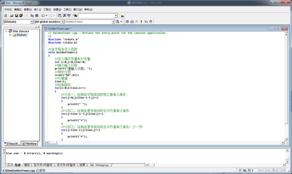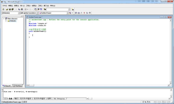 3.在void GoldenTower()函数体内插入如下代码: