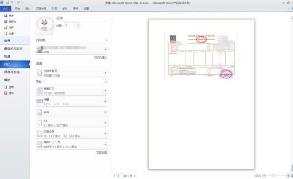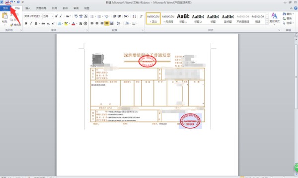 之后,新建一个Word文档并打开,将截取好的图片粘贴到文档中,点击保存,这样发票就以图片的形式保存下来了。