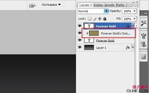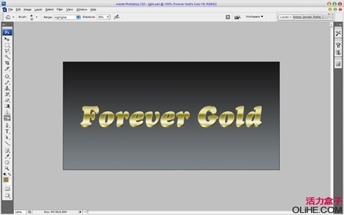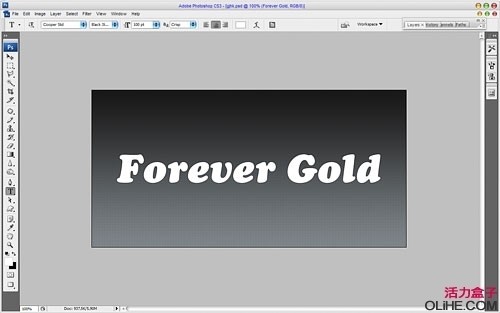 选择文字工具(T),然后在画布中间的位置输入例如”Forever Gold”这样的文字.