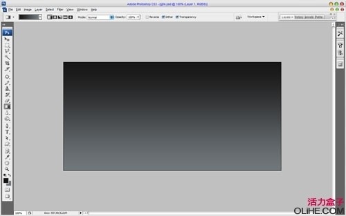 新建图层,命名为”渐变背景”,选择渐变工具(G),选取合适的颜色,比如#161515和#71777b,然后从上到下拖一个线性渐变出来(由深到浅).