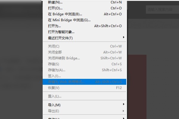 4、还有一种方法是我们使用ps软件对我们的照片进行编辑,我们先将图片插入到ps软件之中,插入以后我们点击软件左上方的文件,找到另存为web格式,将图片进行保存。