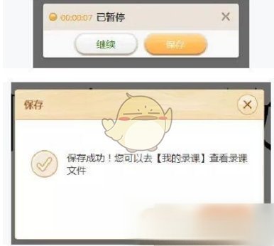 4、录课过程中,可暂停/继续录制,录制中止后可保存录课内容