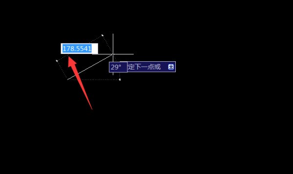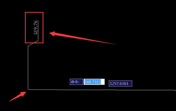 2、左键单击这条线的任意一个端点,然后移动鼠标到线段上方,再单击鼠标左键,就可以看到有一个数字,这个就是坐标标注。