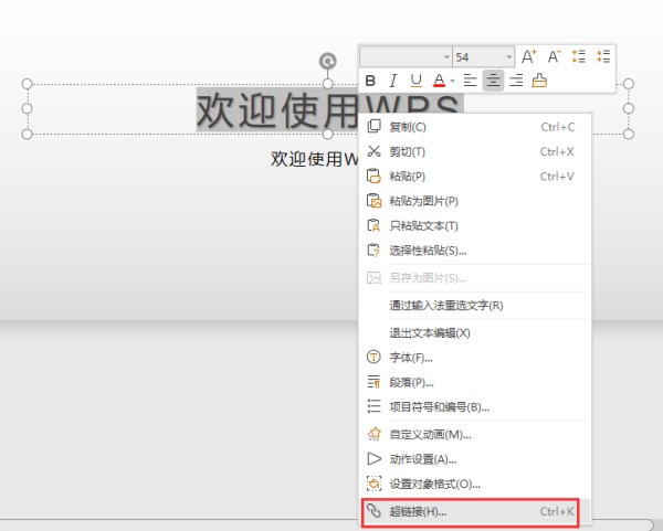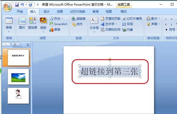 2、我冲仔慧们现在演示超链接,我给第一张幻灯片中的文本添加超链接,让第一张灯片中的文字超链接到第三张。首先选中文本文字。