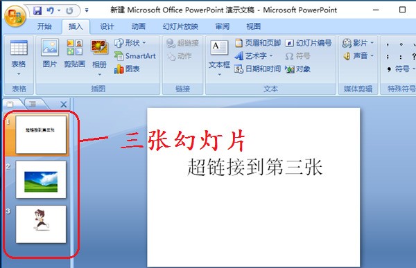 1、打开ppt2010文档,提前做好了三张幻灯片