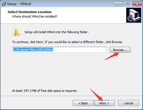在弹出的“选择安装位置窗口”中,可以通过点击“Browse按钮”选择新的安装位置。通常采用默认安装位置,直接点击“Next按钮”进入下一步;