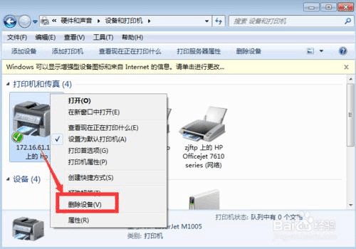 Win10系统下HP M1005打印机能打测试页,但WORD 打印文件没反应一、删除打印机