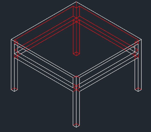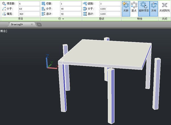 然后,用x命令将桌脚阵列炸开,并用uni命令将所实刻官有实体合并为一个整体,并将桌面上的方形环形线删掉,得到如下图
