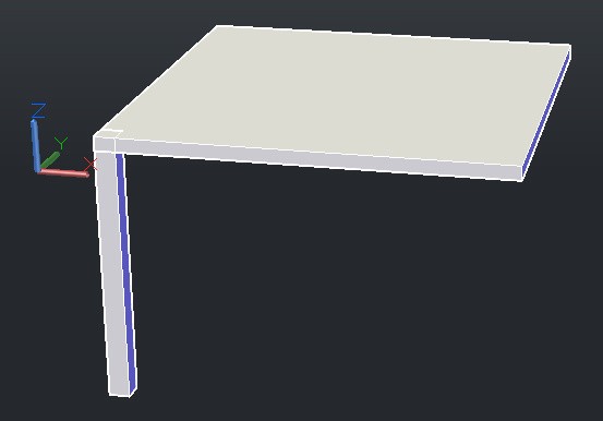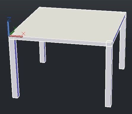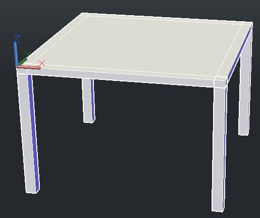 然后,用box命令,以桌面左前顶点(靠近坐标原点的)为起点,画长宽为60mm,高为-800mm的脚(向下方画)