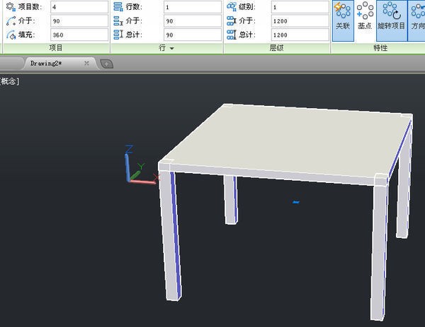 首先,将工作区视图变为三维视图状态如东南等轴测视图,视觉样式选择概念显示,并用box命令画一个长宽为1200mm,高为40mm的桌面。