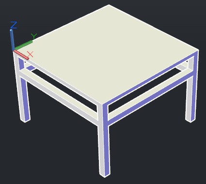 以上就是立体的方形桌子的线框图,如要将该立体图变为平面的,可以用fl命令(全名flatten),或者用平面摄影命令fsh命令(全名flatshot)完成。