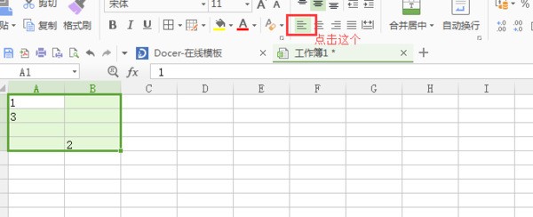 点击表格上方向左靠齐,如图所示